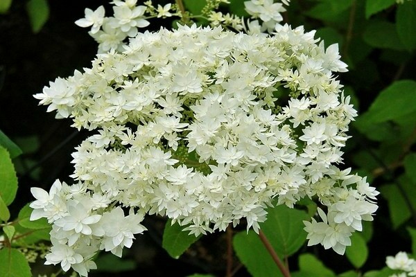 - Цветы: махровые, белые, с легким зеленоватым оттенком.