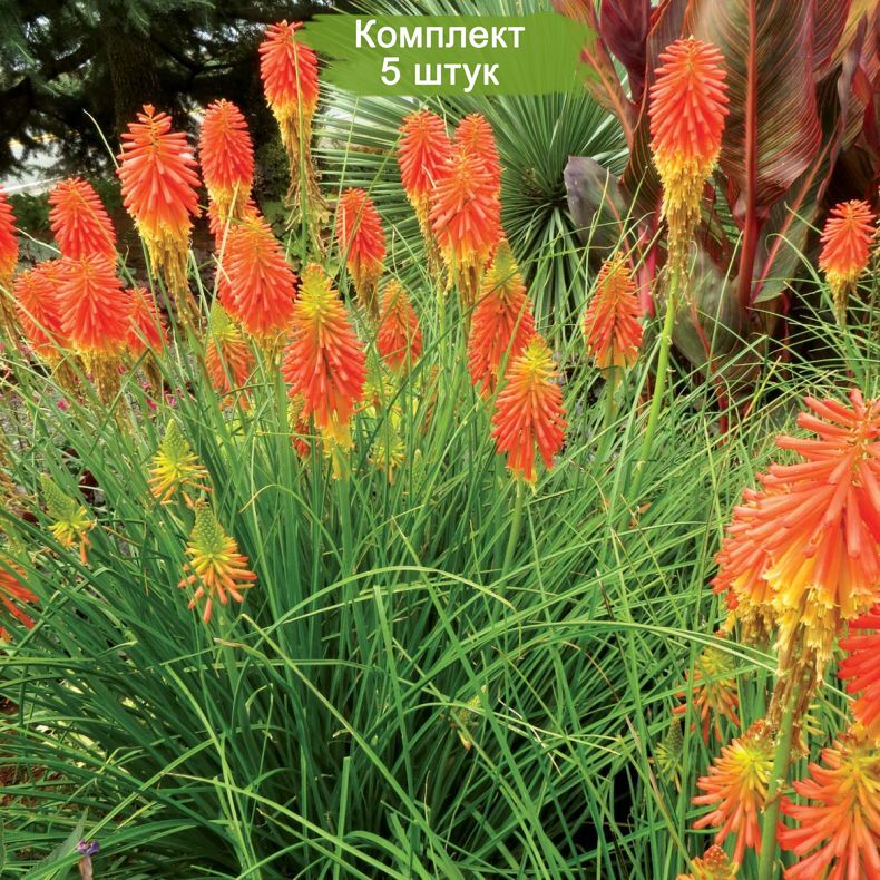 В набор входит 5 саженцев книфофии ягодной Оранж Бьюти, готовых к высадке в открытый грунт.